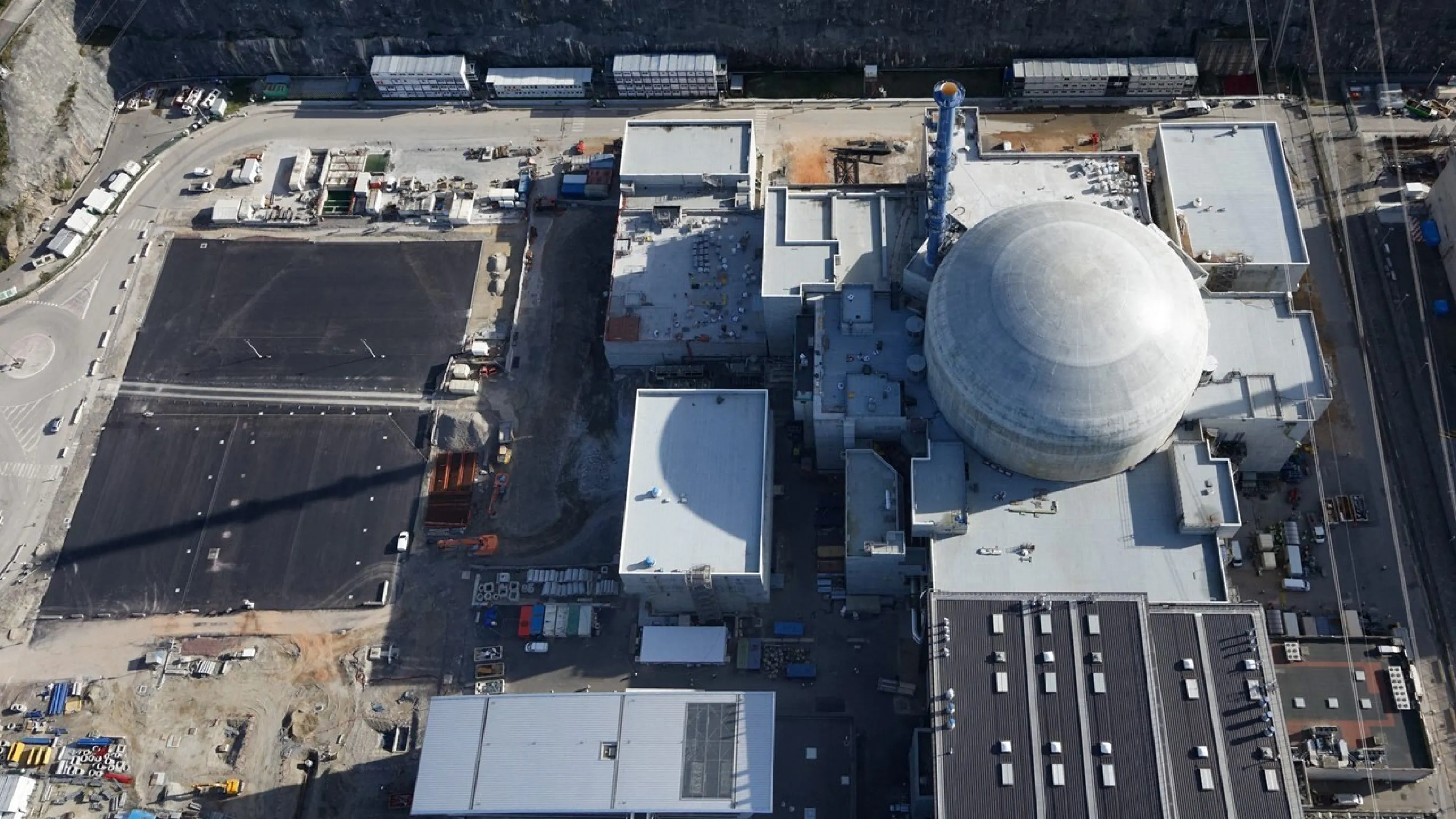 De plus, une coque ceinture les bâtiments nucléaires pour protéger la centrale contre la chute d’un avion.