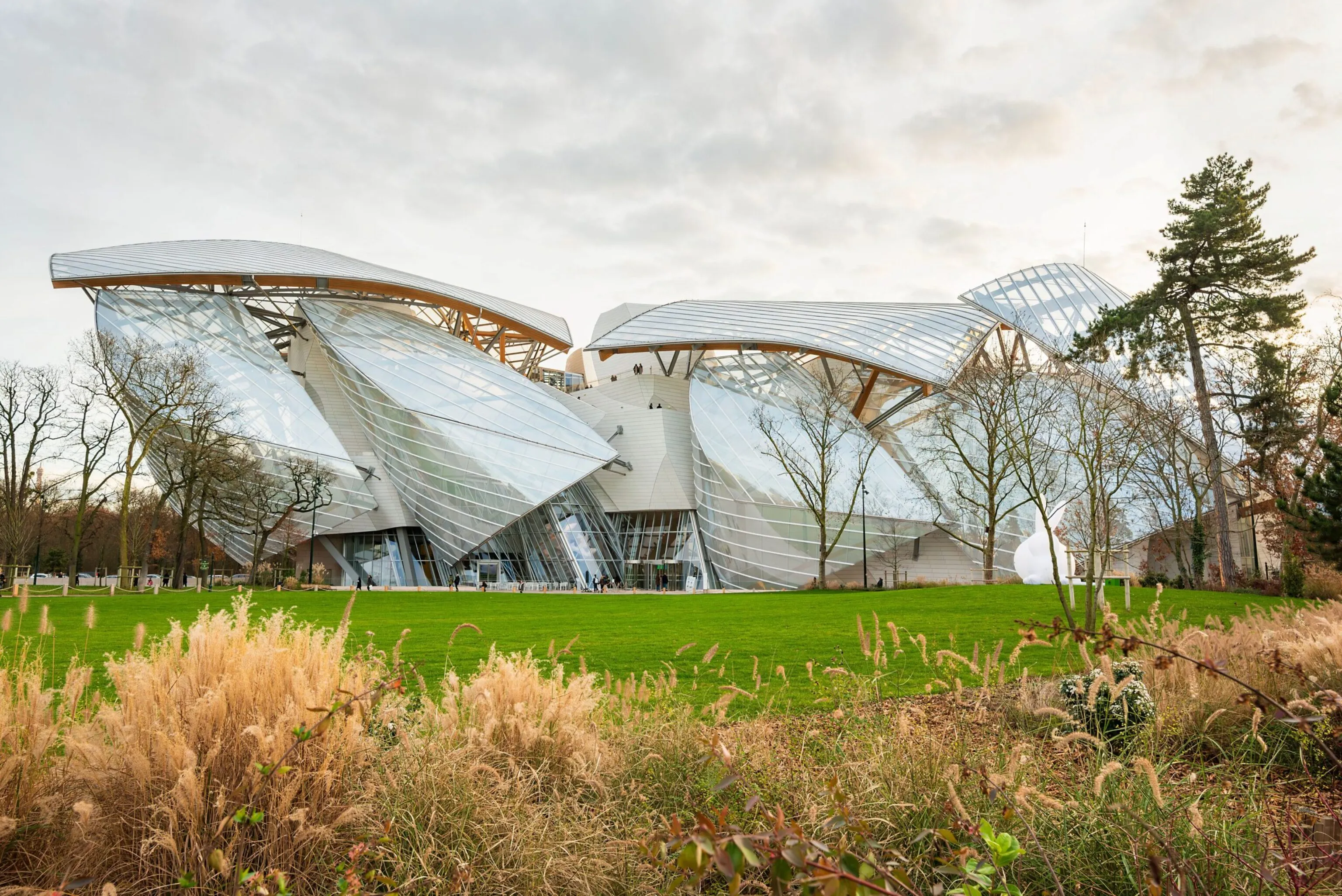 Destinée à la présentation et la conservation d’œuvres d’art, la Fondation Louis Vuitton est un agencement de fortes libres inspirées d’iceberg, coiffée d’une seconde enveloppe de 12 voiles de verre ouvertes aux vents. La superstructure du bâtiment est le jeu d’interactions complexes engendrés par des ouvrages dont elle est à la fois l’ossature et le socle.