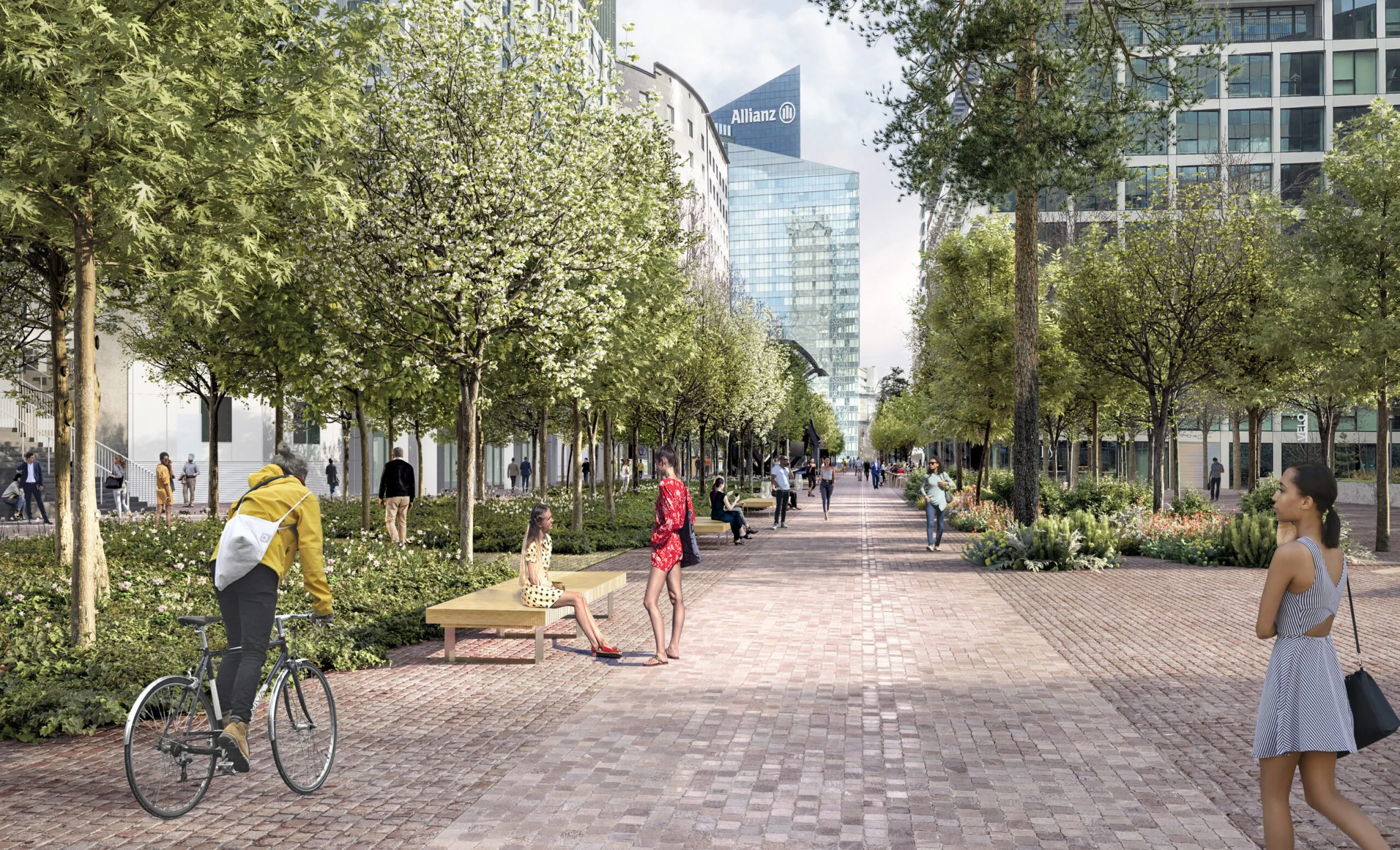 La métamorphose des espaces publics du quartier Michelet intègre les nouveaux usages avec l’ambition d’excellence environne- mentale : continuité écologique, confort bioclimatique, conception bas carbone et réemploi, gestion intégrée des eaux pluviales.