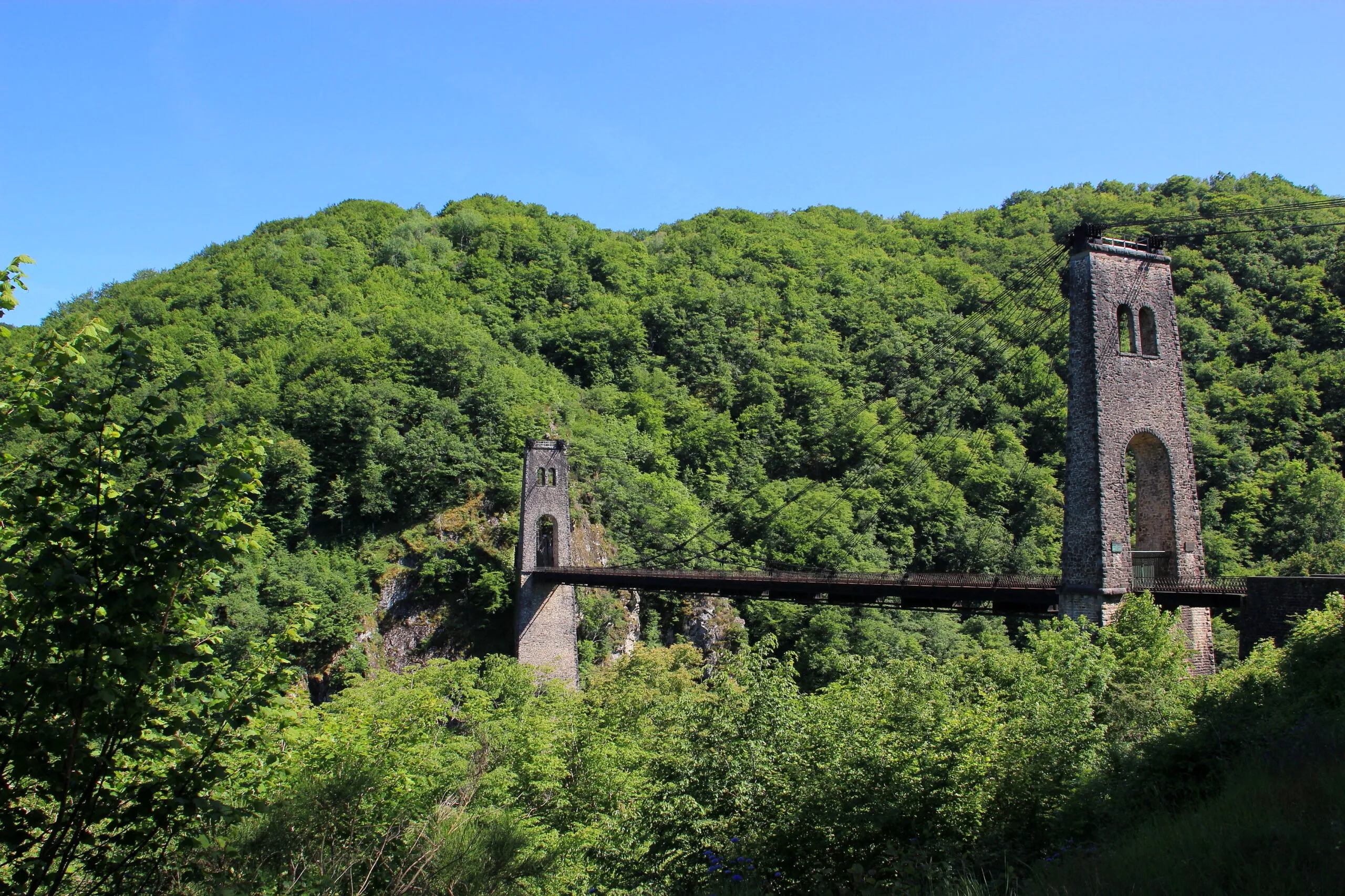 Suite à la fermeture de la ligne en 1959, la voie fut remplacée par un chemin départemental. Ce pont de type Gisclard est l’un des 8 rescapés des seulement 41 de ce type construits dans le monde. A ce titre, il est classé monument historique, mais fermé à cause de l’état de corrosion avancé de la suspension. setec tpi intervient pour le rouvrir aux circulations douces.