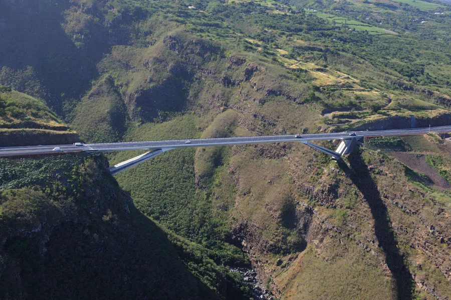L’ouvrage exceptionnel de la Grande Ravine permet à la route des Tamarins de franchir une brèche aux dimensions vertigineuses : 300 m de large et 170 m de profondeur. La solution constructive, liée à une approche très technique du projet, a rencontré les aspirations esthétiques de l’architecte et permis de minimiser l’impact de l’ouvrage.