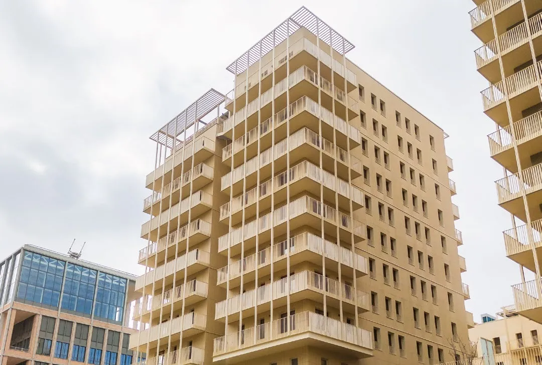 Pour répondre à l’ambition d’excellence environnementale des Jeux Olympiques de Paris 2024, notre équipe a conçu ces bâtiments du village des athlètes comme la vitrine du savoir-faire français en matière d’éco-conception. Socle et infrastructures à noyau en béton bas carbone, planchers mixtes bois-béton, poteaux en bois lamellé-collé, façades porteuses en murs à ossatures bois, balcons et terrasses végétalisés au profit du confort bioclimatique.