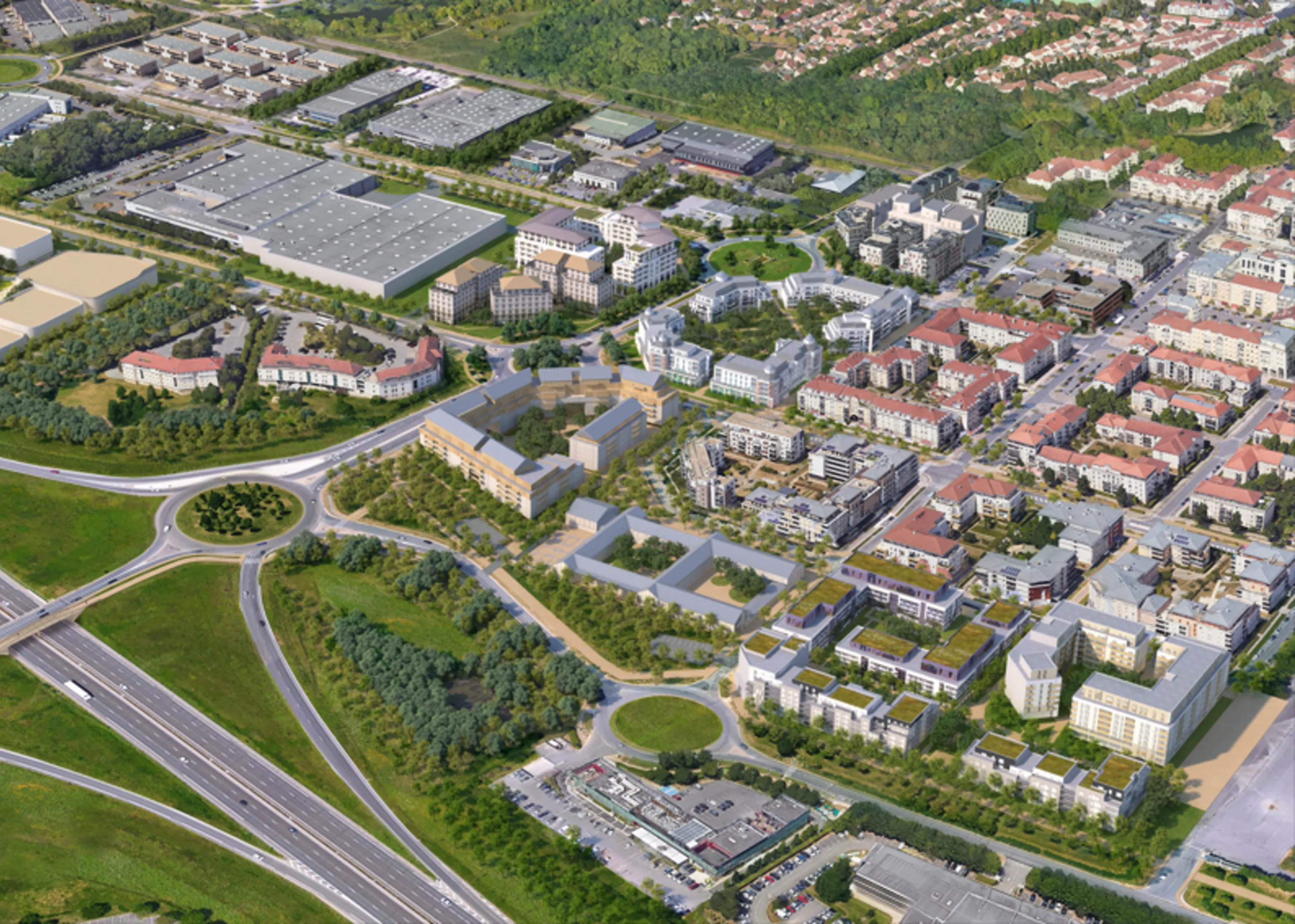 La création du quartier « Entrée de Ville » valorise le capital foncier et paysager grâce à une programmation mixte associant logements, équipements publics et activités. Le projet intègre un réseau de venelles piétonnes végétalisées qui forme une forêt urbaine ainsi qu’une voie express vélo reliant Bussy-Saint-Georges aux communes voisines.
