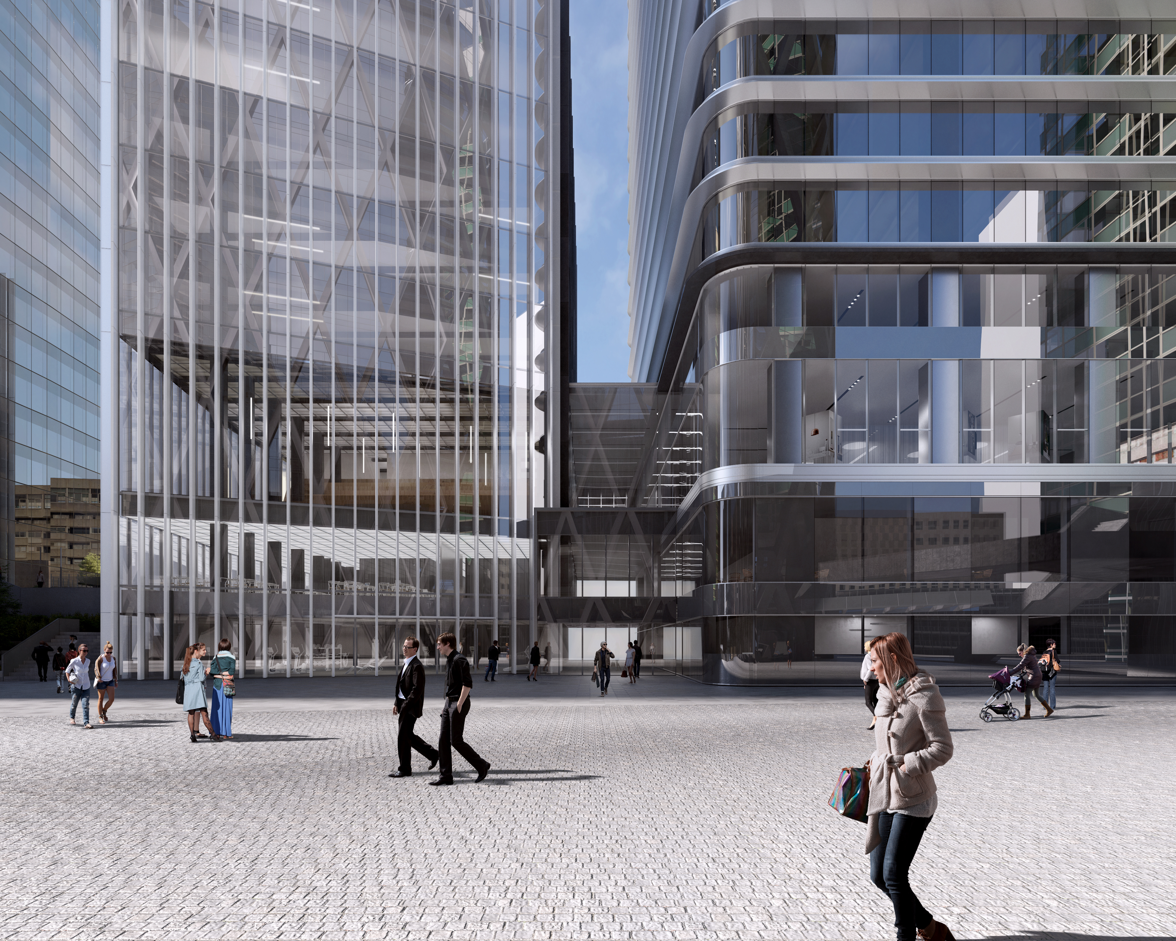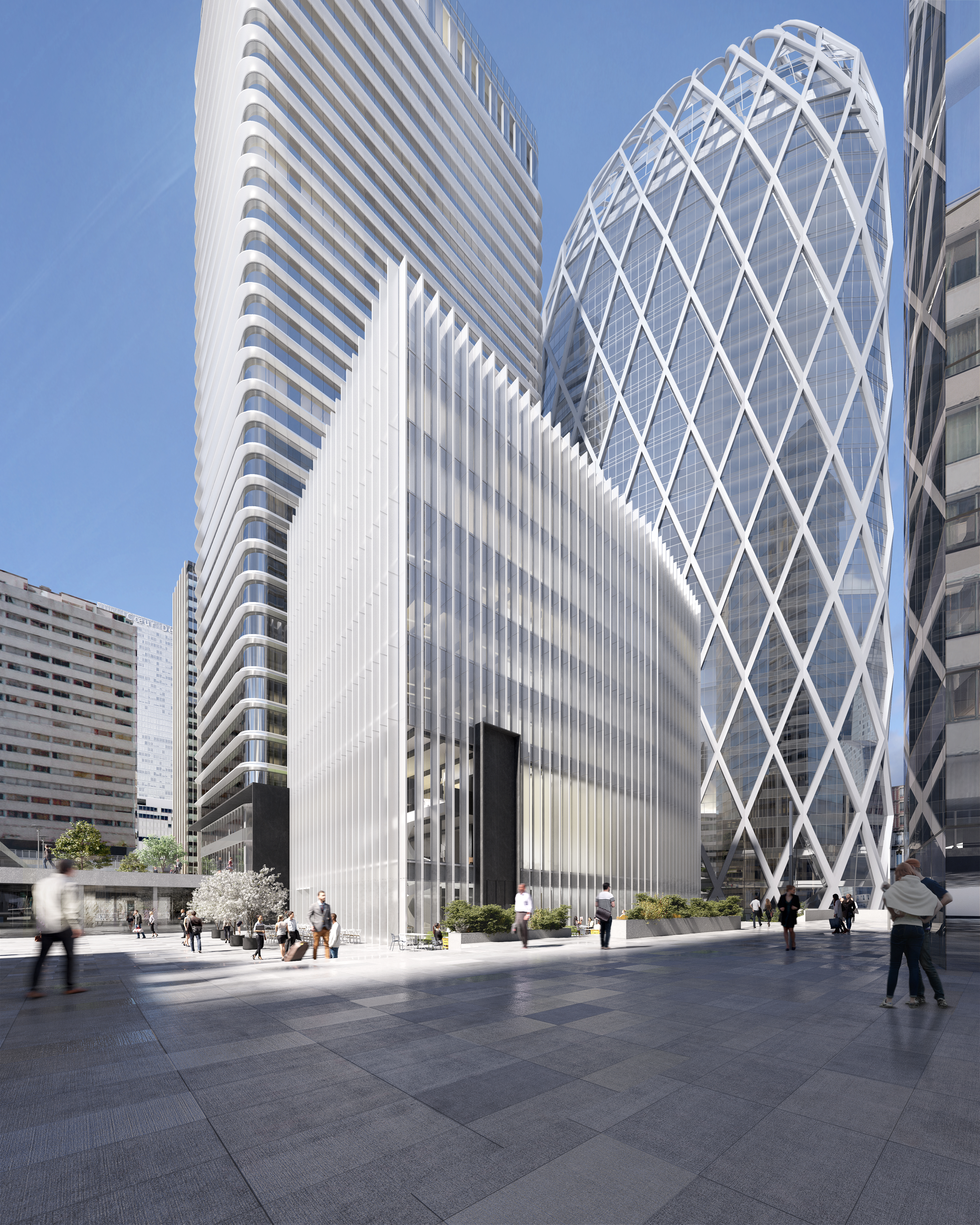 Situé à côté de la tour, le bâtiment de l’ancienne agence BNP sera lui en revanche complètement démoli et laissera sa place à un « pavillon » qui regroupera sur huit niveaux une multitude de services (coworking, business center, auditorium…).
