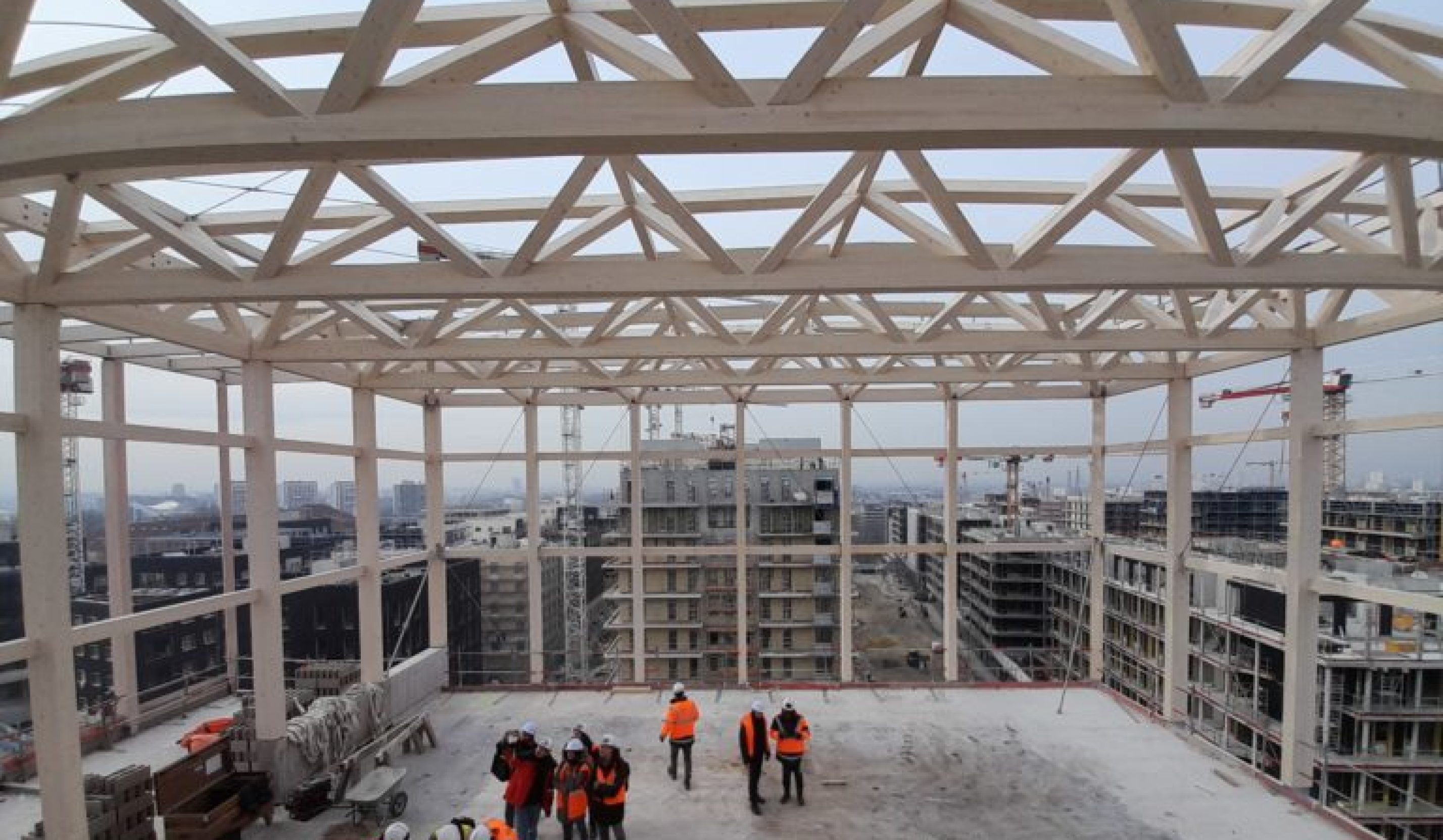 La réalisation des structures mixtes bois/béton bas carbone du Village des Athlètes et Parathlètes secteur E touche à sa fin.